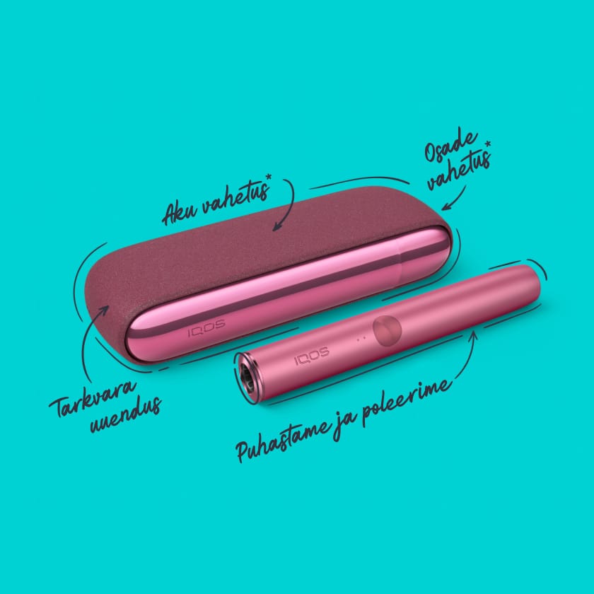 IQOS ILUMA on mõeldud kasutamiseks kuumutatavate tubakapulkadega TEREA. HEETS tubakapulka ei saa IQOS ILUMA seadmetega kasutada. Ära kasuta TEREA kuumutatavaid tubakapulki eelmise põlvkonna IQOS seadmetega - muidu võid seadet kahjustada. Kuumutatavad tubakapulgad TEREA sisaldavad metallist osi. Kuumutatavaid tubakapulki ei tohi alla neelata ega koost lahti võtta - need sisaldavad teravat metallosa, mille allaneelamine võib põhjustada raskeid vigastusi. Hoia lastele ja lemmikloomadele kättesaamatus kohas.